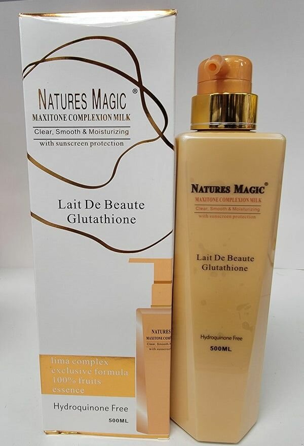 Natures magic maxitone complexion milk is an innovative formula of skin whitening hydrating body lotion.This fine perfumed body lotion helps to clear dark and age spots, pigmented marks, scars and other signs of premented skin ageing.