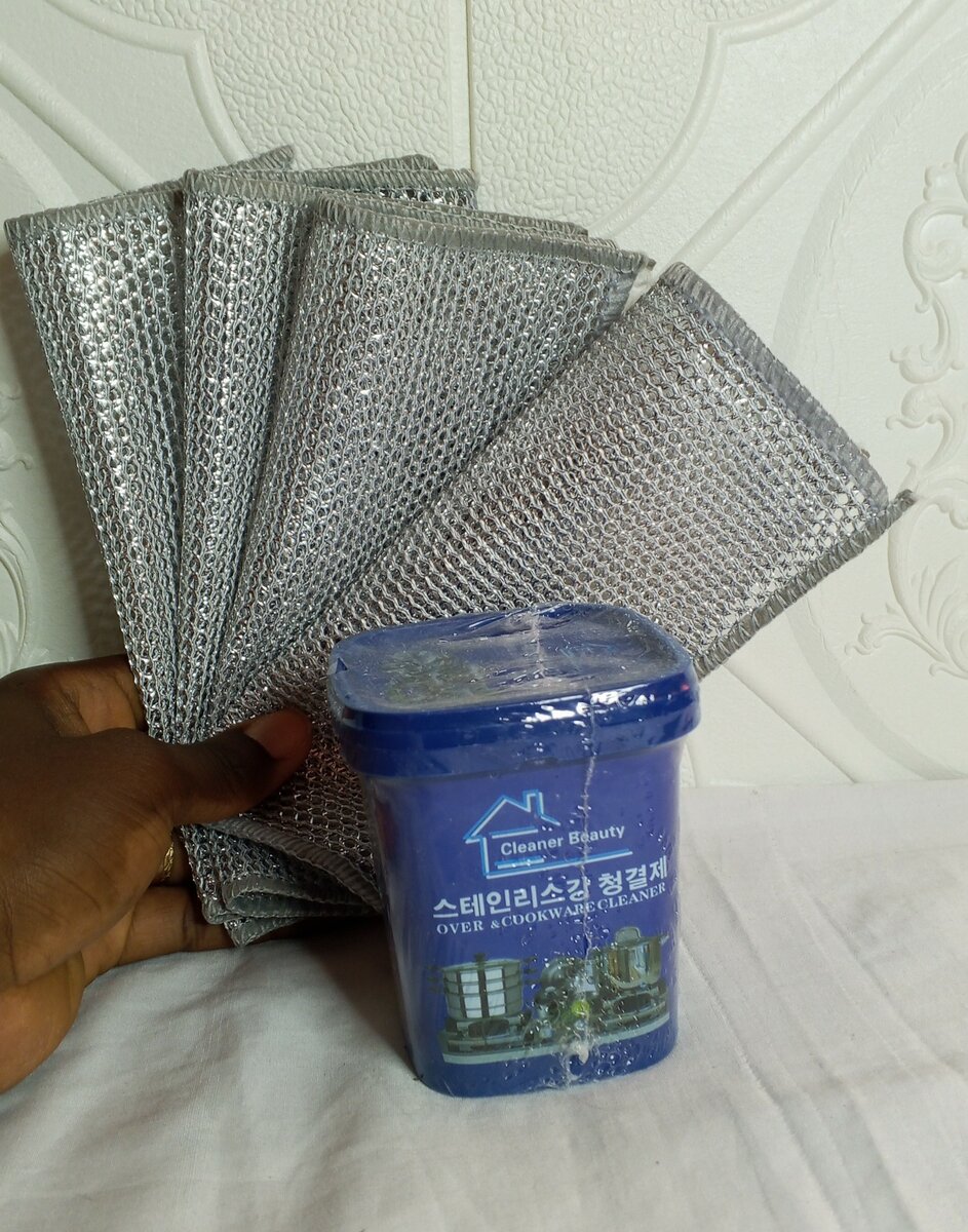 Nettoyant efficace pour casseroles, cuisinière et inox. Inclut 4 éponges. Longue durée et sans dégâts sur les surfaces. Idéal pour cuisine et objets en inox.