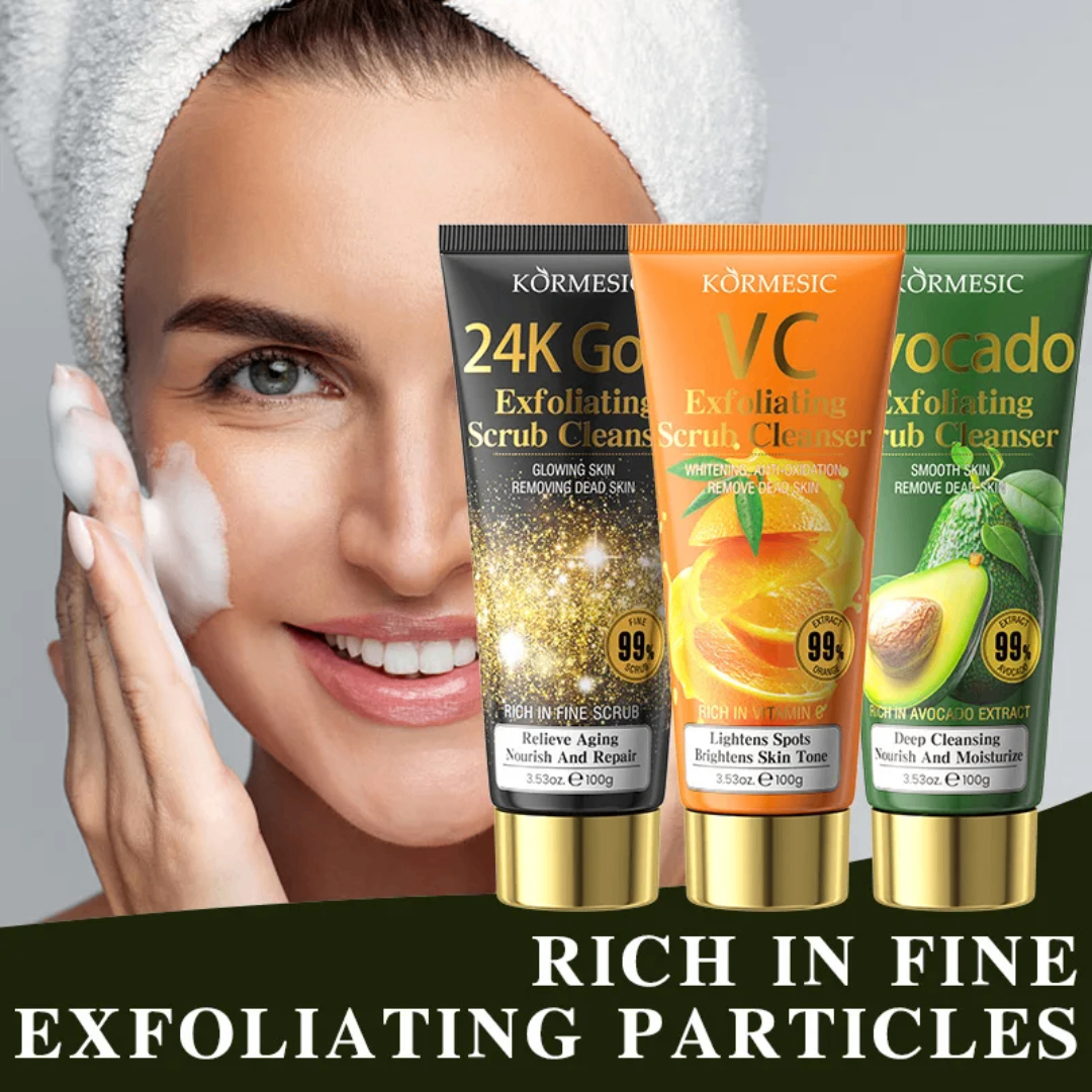Découvrez le Nettoyant Exfoliant KORMESIC : Éclat, Réparation et Hydratation. Enrichi en or 24K, vitamine C, et avocat, il illumine et revitalise votre peau. Parfait pour un teint lisse et radieux chaque jour. Adoptez un soin spa quotidien !