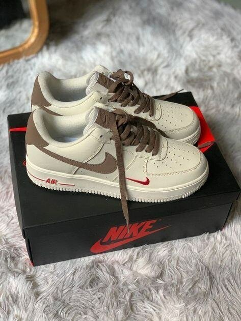 Chaussures Nike Air Force 1 pour hommes et femmes, couleur beige et marron. Conçues pour le confort et le style, ces baskets sont idéales pour la vie quotidienne, les sorties décontractées ou les activités sportives légères.