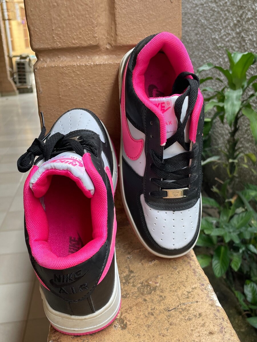 Discover ultimate comfort and vibrant style with Nike Air Max sneakers. These eye-catching shoes feature a bold pink and black design, perfect for making a statement. Ideal for both casual outings and athletic endeavors, they provide superior comfort and a trendy look.