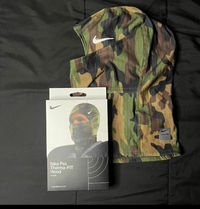Découvrez le Nike Pro Thermo-FIT Hood, un masque de visage camouflage conçu pour les sportifs. Fabriqué par Nike, il offre une protection thermique et un style camouflage unique. Idéal pour les activités en plein air.