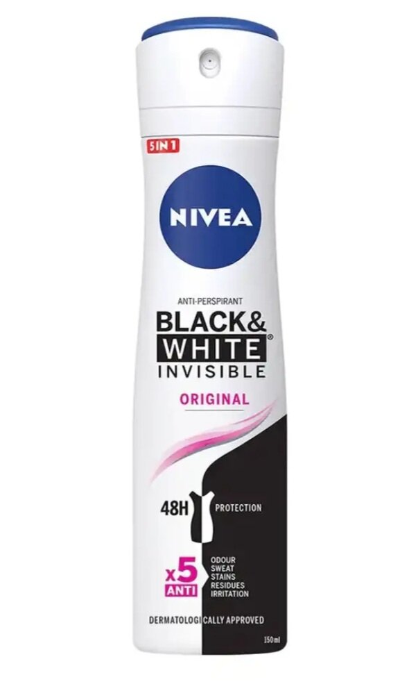 Déodorant anti-transpirant Nivea Black & White Invisible Original, protection 48h. Anti-odeur, anti-taches, anti-irritations. Parfait pour une protection quotidienne efficace.