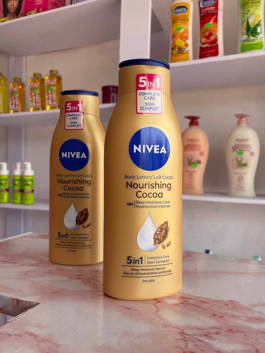 Enriched with coconut oil and cocoa butter, Nivea cocoa nourishing body lotion provides deep moisture and smoothens away dullness.