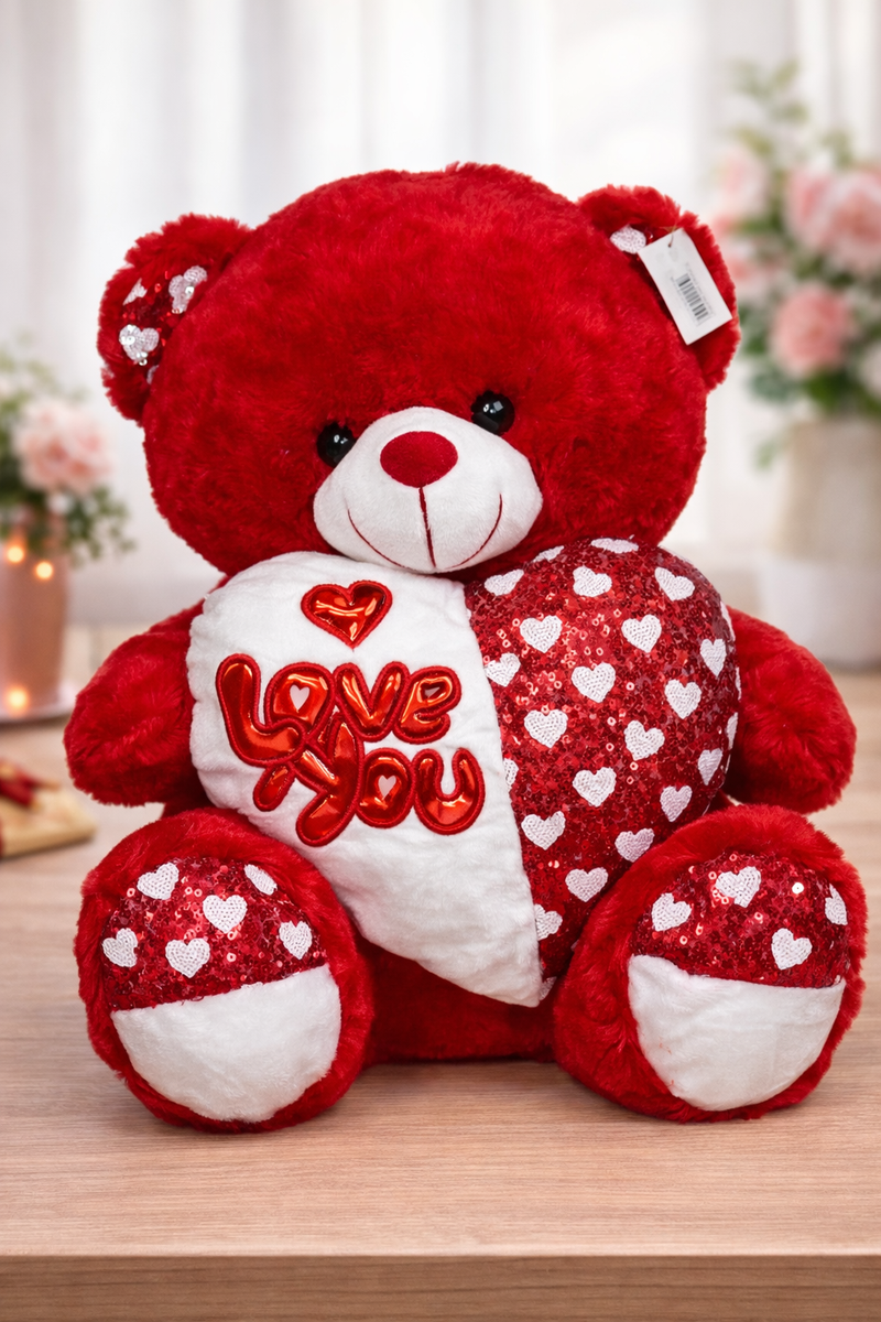 Un nounours en peluche avec un coeur 'love you' pour la Saint-Valentin, un anniversaire ou juste pour dire 'je t'aime'. Fabriqué en tissu doux et câlin, cet ours en peluche rouge ou marron sera un compagnon idéal pour les enfants et les adultes.