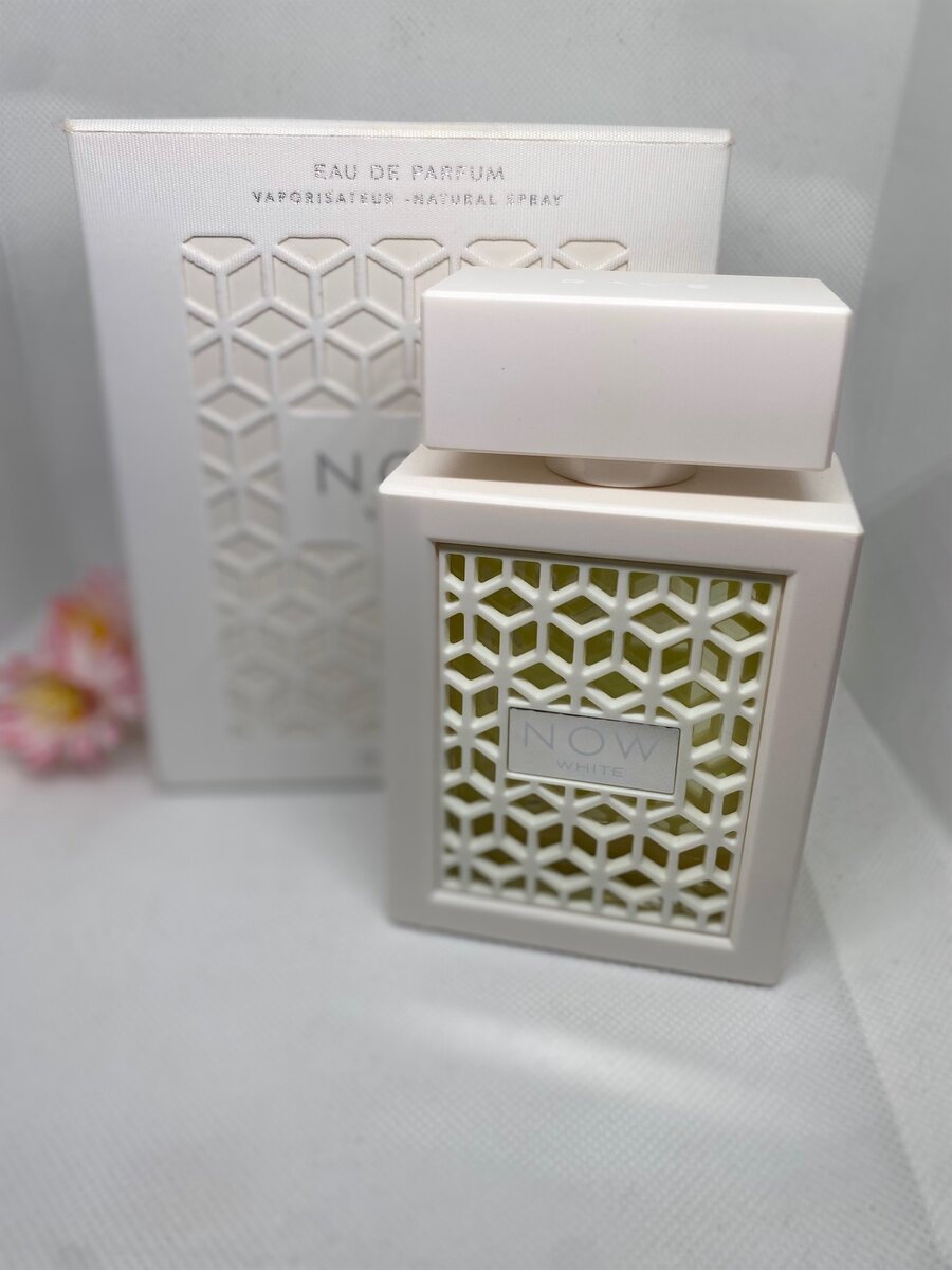 Now White by RAVE is a fragrance for women and men. This is a new fragrance. Now White was launched in 2023. Top notes are Grapefruit and Bergamot; middle notes are Green Apple and Patchouli; base notes are Amber, Musk and Cashmeran.