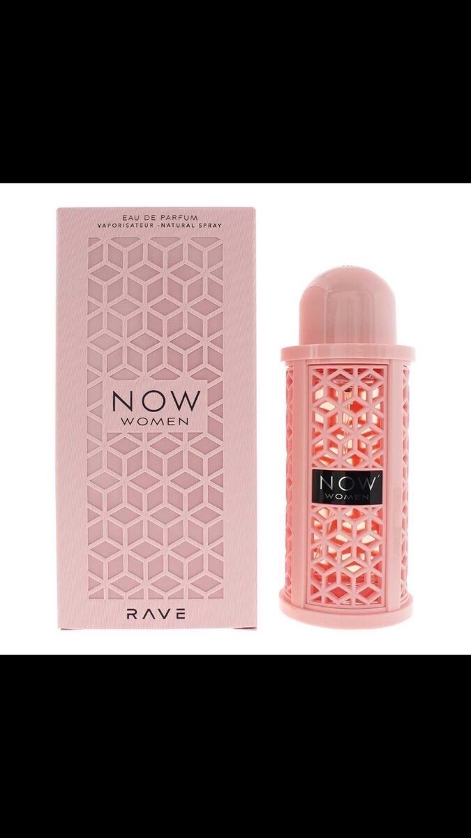 Now Women by RAVE is a fragrance for women. This is a new fragrance. Now Women was launched in 2023. Top notes are Red Fruits and Orange; middle notes are Marshmallow, Jasmine and Lily of the Valley; base notes are Vanilla, Musk and Mos