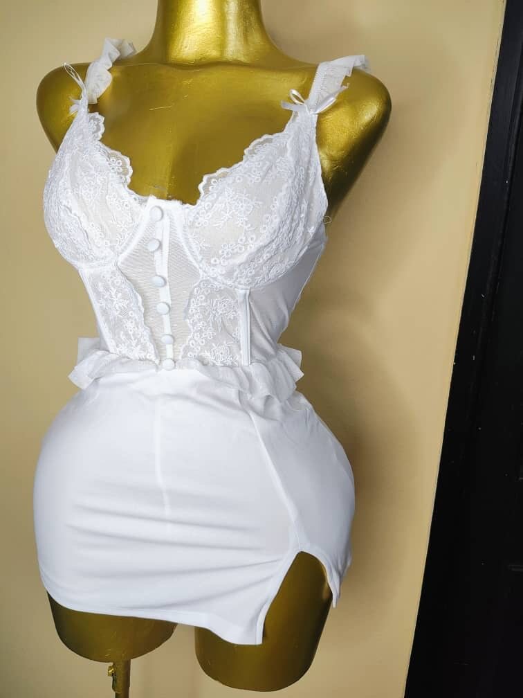 Découvrez le confort et l'élégance avec cette nuisette en dentelle blanche. Parfaite pour une nuit romantique, elle offre une douceur inégalée avec une allure séduisante. Idéale pour toutes les femmes souhaitant se sentir spéciales, elle s'ajuste parfaitement à votre silhouette.