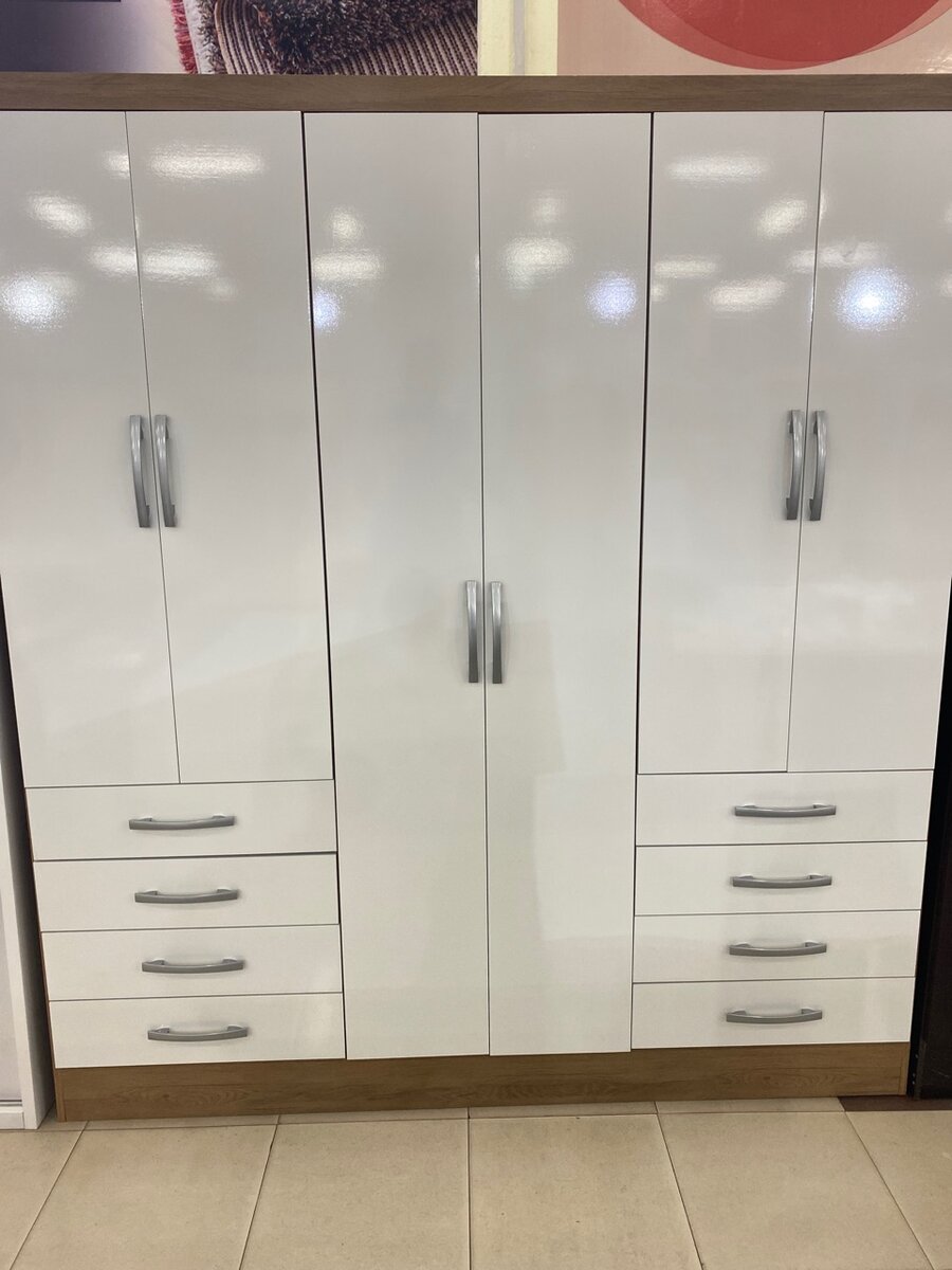 Oak white wardrobe 8 Drawers 6 Doors 4 Hanger 5 inbuilt shelves 180cm x 200cm x 50cm