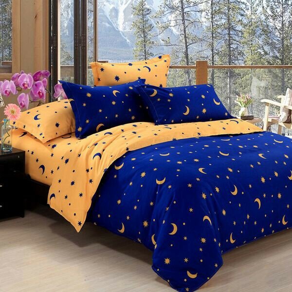 Its 100% cotton and it comes in a bedsheet with 3 pillow cases Double size for students, queen size and king size