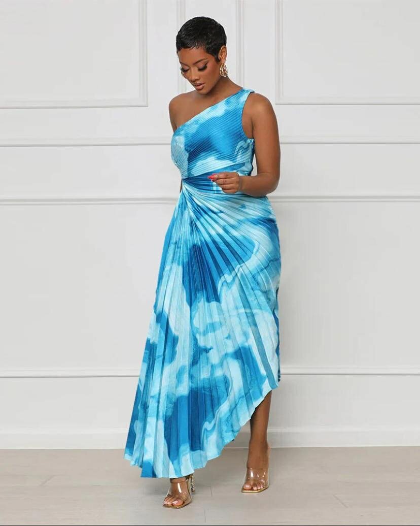 One shoulder Tie Dye pleated cutout dress