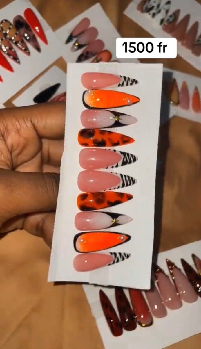 ( le lot de 4 à 5000f ) Transformez vos mains avec ces faux ongles vibrants et stylisés. Parfaits pour une occasion spéciale ou pour ajouter une touche d'originalité à votre quotidien. Les motifs audacieux mettent en valeur votre personnalité unique. Parce que même vos ongles méritent le meilleur️️