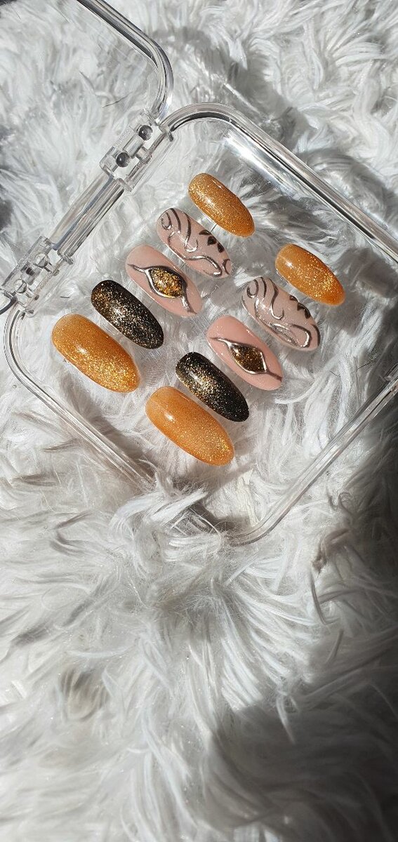 Des press on nails nails au motifs éclatants, orignaux, élégants spécialement conçue pour celles qui aiment osez... Apporter une touche sophistiquée a vos look grâce a ce design de press on nails.