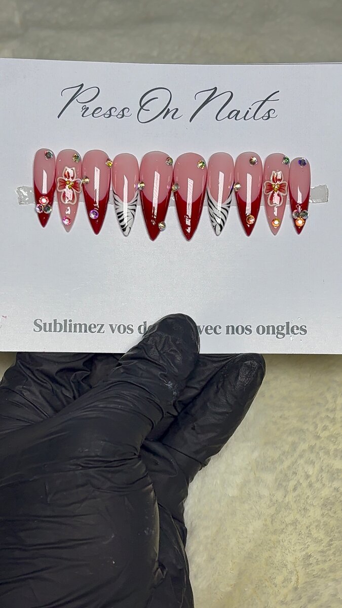 Découvrez ces élégants ongles pressons rouges avec motifs glamour et strass étincelants. Parfaits pour sublimer vos mains en toute occasion, ils offrent une touche professionnelle sans salon. Faciles à appliquer et à retirer, ces ongles sont votre solution pour des mains toujours impeccables et à la mode.