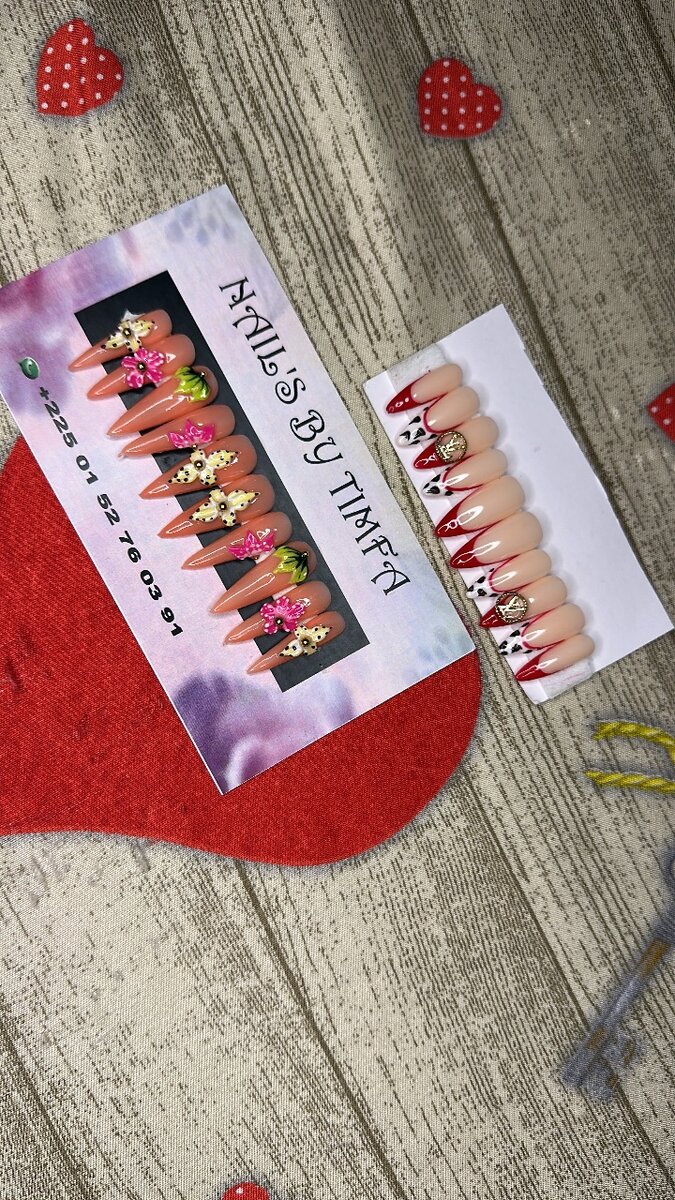 Découvrez nos ongles press-ons personnalisés, idéals pour un look unique et élégant. Ces sets colorés et artistiques sont parfaits pour toutes les occasions spéciales. Faciles à appliquer et à enlever, ils offrent une solution rapide pour changer de style. Idéals pour les fêtes, les événements ou simplement pour se faire plaisir. Avec des designs variés et attrayants, ces ongles sont votre accessoire mode incontournable!