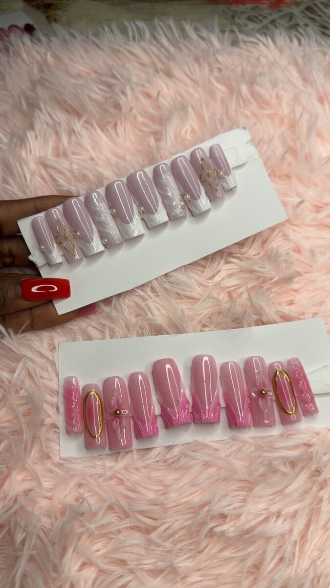 Découvrez ces élégants ongles press-ons roses, parfaits pour une manucure rapide et glamour. Chaque ensemble est conçu avec des détails brillants et des accents dorés pour un look sophistiqué. Faciles à appliquer et à enlever, ils sont idéaux pour un usage quotidien ou pour des occasions spéciales. Transformez votre style en un instant avec ces magnifiques ongles press-ons!
