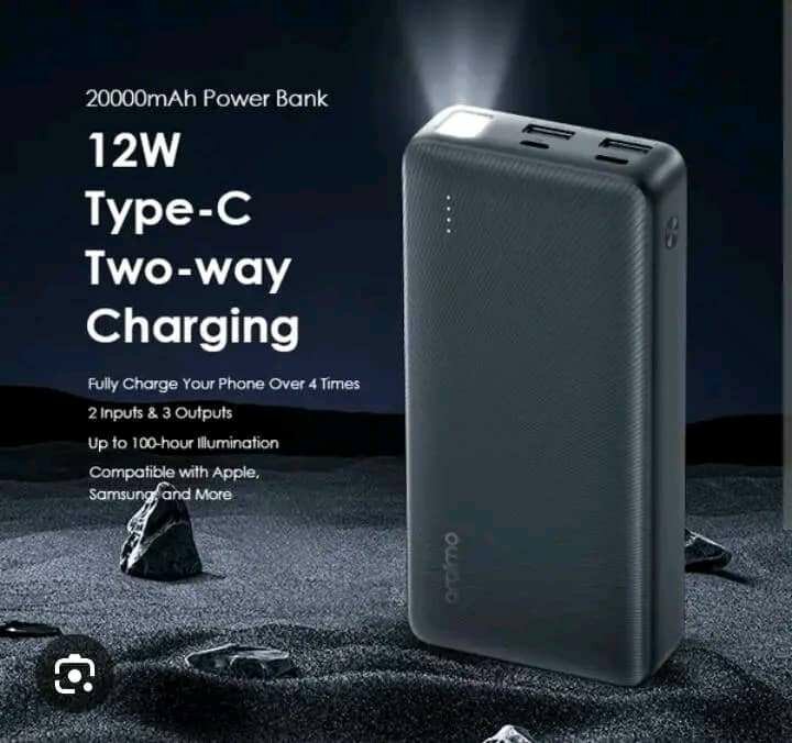 Stay powered on the go with the Oraimo 20000mAh Power Bank, featuring 12W Type-C two-way charging. Fully charge your phone over 4 times and enjoy up to 100-hour illumination. Compatible with Apple, Samsung, and more. Ideal for travel and daily use.