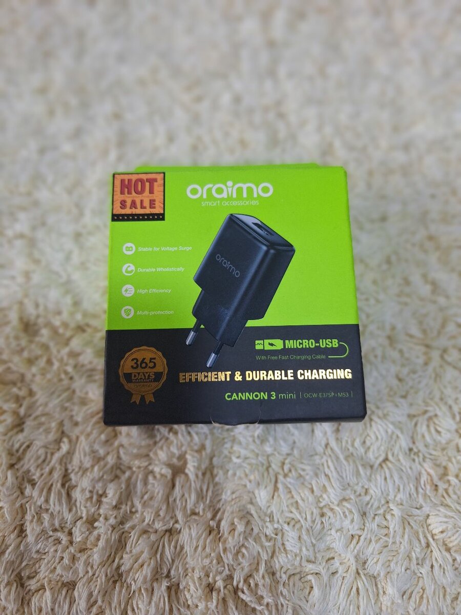 Chargez efficacement avec le chargeur Oraimo Micro-USB, conçu pour offrir une charge durable et rapide. Idéal pour tous vos appareils Micro-USB.
