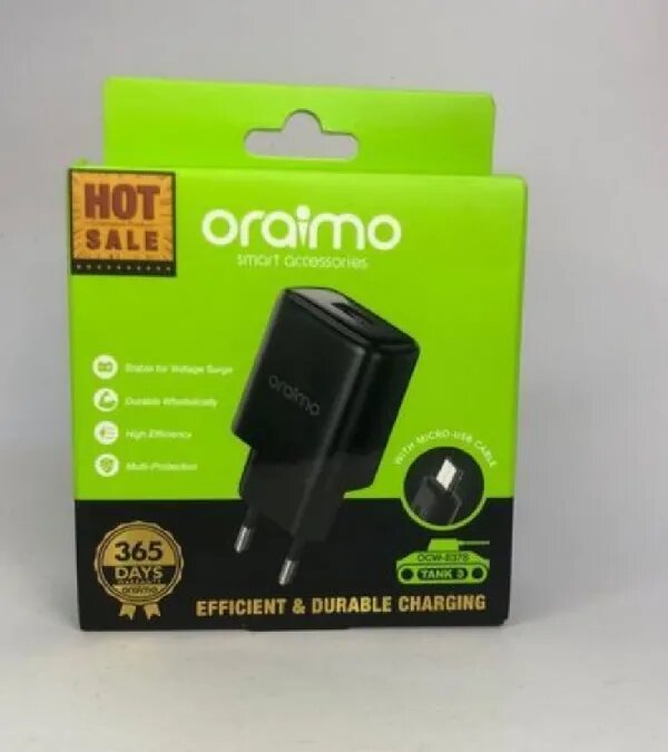 Bénéficiez d'une charge efficace et durable avec l'adaptateur de charge rapide Oraimo. Idéal pour la maison, le bureau ou les voyages, cet adaptateur offre une charge stable et rapide, garantissant l'alimentation de vos appareils.