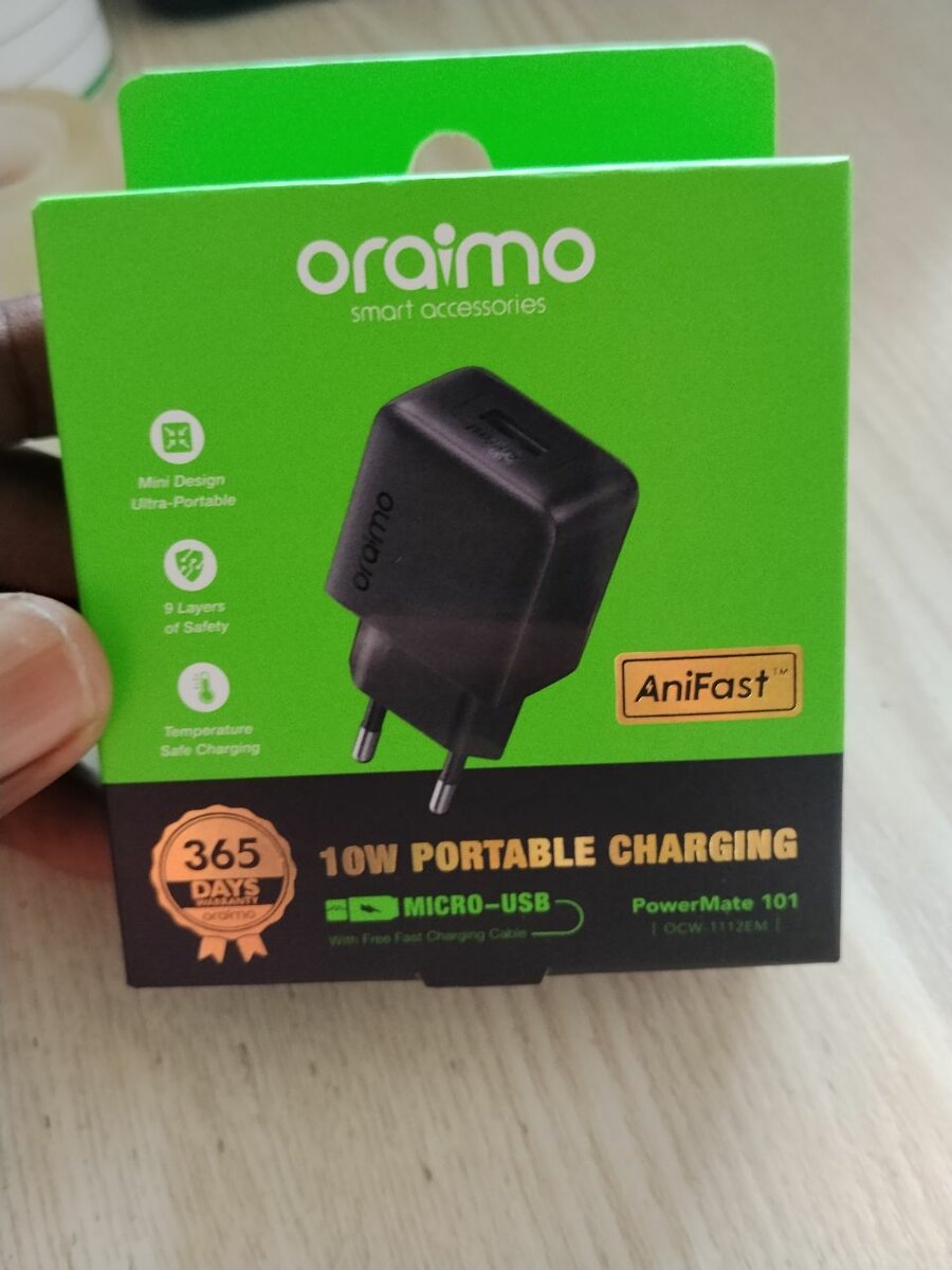 Compact and efficient Oriamo 10W portable charger with Micro-USB compatibility. Ideal for quick and safe device charging on the go. Features AniFast technology for optimal performance.