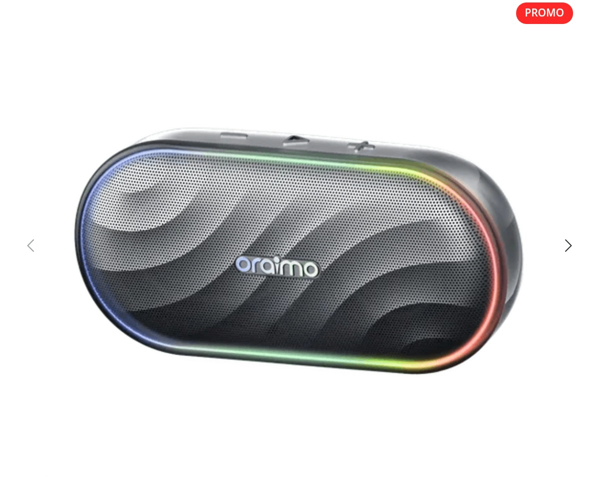 Découvrez l'enceinte Bluetooth oraimo, compacte et waterproof, avec lumières RGB. Profitez d'un son puissant et d'une batterie longue durée. Idéale pour les sorties, la maison ou la plage.OBS-382 .