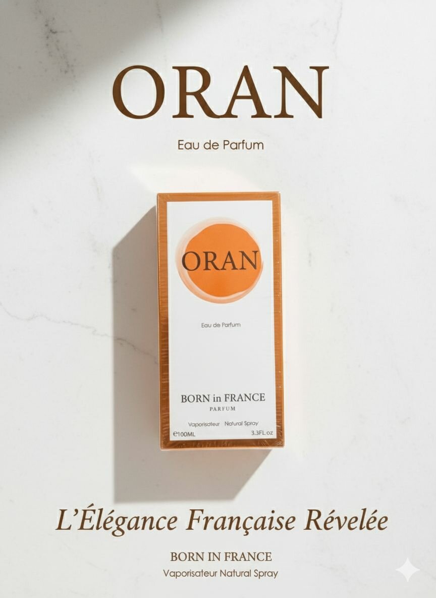Découvrez ORAN, un parfum exquis né en France, incarnant l'élégance française. Ce vaporisateur naturel de 100ml enveloppera vos sens de notes raffinées et durables. Parfait pour sublimer votre allure quotidienne.