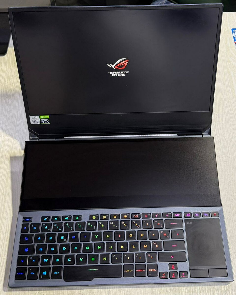 Découvrez l'ordinateur portable Asus ROG, conçu pour les joueurs exigeants. Équipé d'un clavier RVB et d'une carte graphique NVIDIA GeForce, il offre des performances exceptionnelles. Son design élégant et robuste est idéal pour une utilisation intensive.***GAMING ASUS ZEPHYRUS DOUBLE ÉCRAN GX550L CORE i7-10TH GÉNÉRATION NVIDIA RTX 2070 8GB***