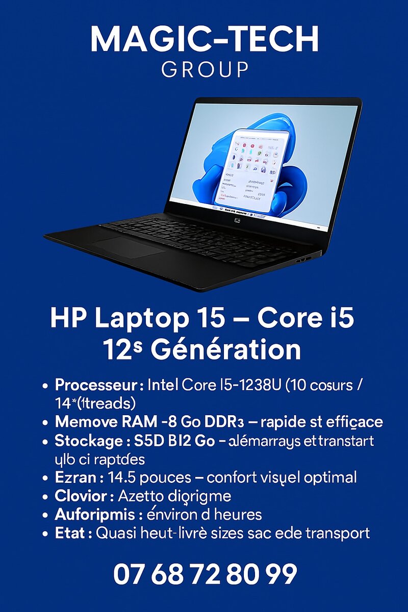 Optez pour l'ordinateur portable HP i5 pour combiner puissance et praticité. Parfait pour le télétravail ou les études, ce modèle est équipé d'un processeur Intel Core i5 de 12e génération offrant rapidité et efficacité. Avec 8 Go de RAM DDR3 et un espace SSD de 512 Go, profitez d'une fluidité optimale pour vos multitâches. Son écran de 14,5 pouces vous garantit un confort visuel exceptionnel. Idéal pour le quotidien moderne.