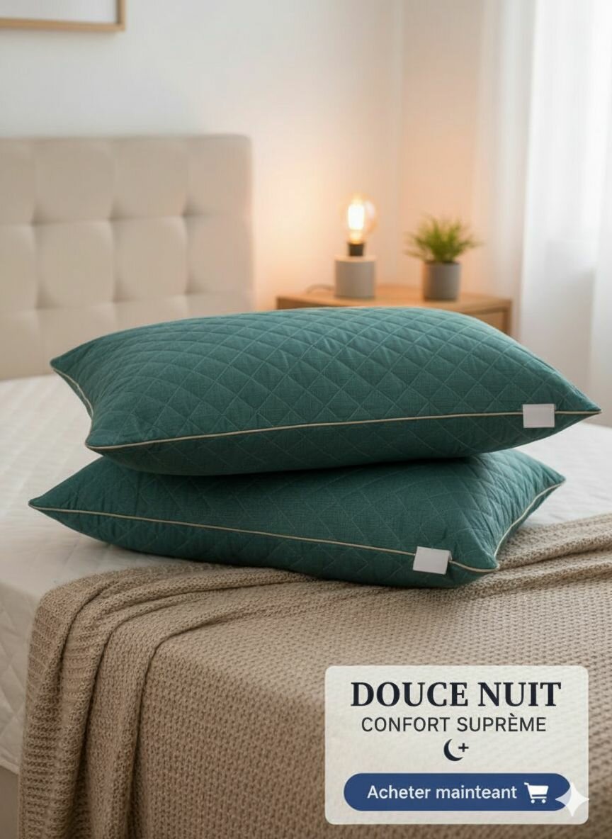 Découvrez le confort ultime avec ces oreillers Douce Nuit. Fabriqués avec un tissu matelassé et un design élégant, ils offrent un support exceptionnel pour vos nuits. Idéal pour toute chambre moderne.
