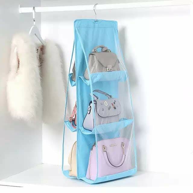 Optimisez votre espace avec cet organisateur de sacs pliable. Conçu en matériau durable avec plusieurs poches transparentes, il garantit la protection et la visibilité de vos sacs à main. Idéal pour les armoires, facile à accrocher, il garde vos accessoires bien rangés et accessibles.