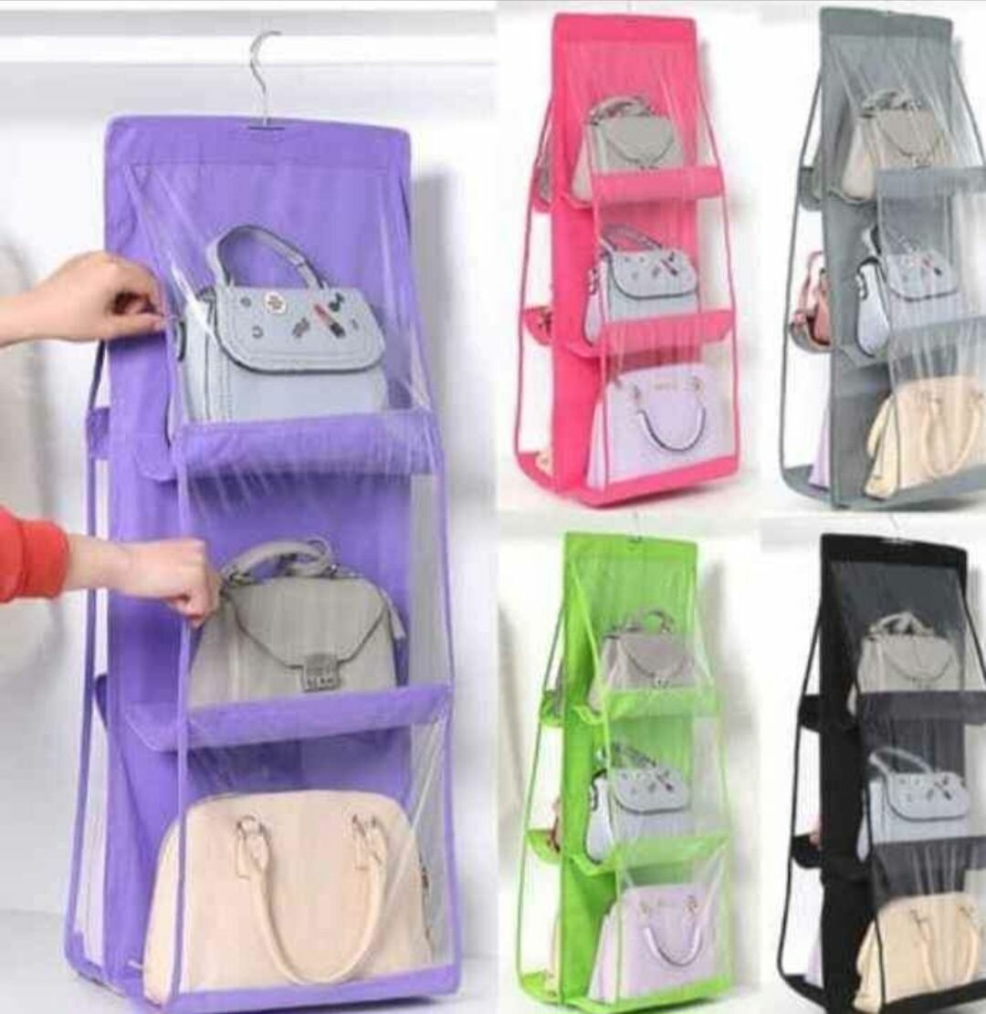 Optimisez votre espace avec cet organisateur suspendu pour sacs. Avec ses compartiments transparents, il protège et met en valeur vos sacs préférés. Idéal pour un dressing bien rangé et accessible.