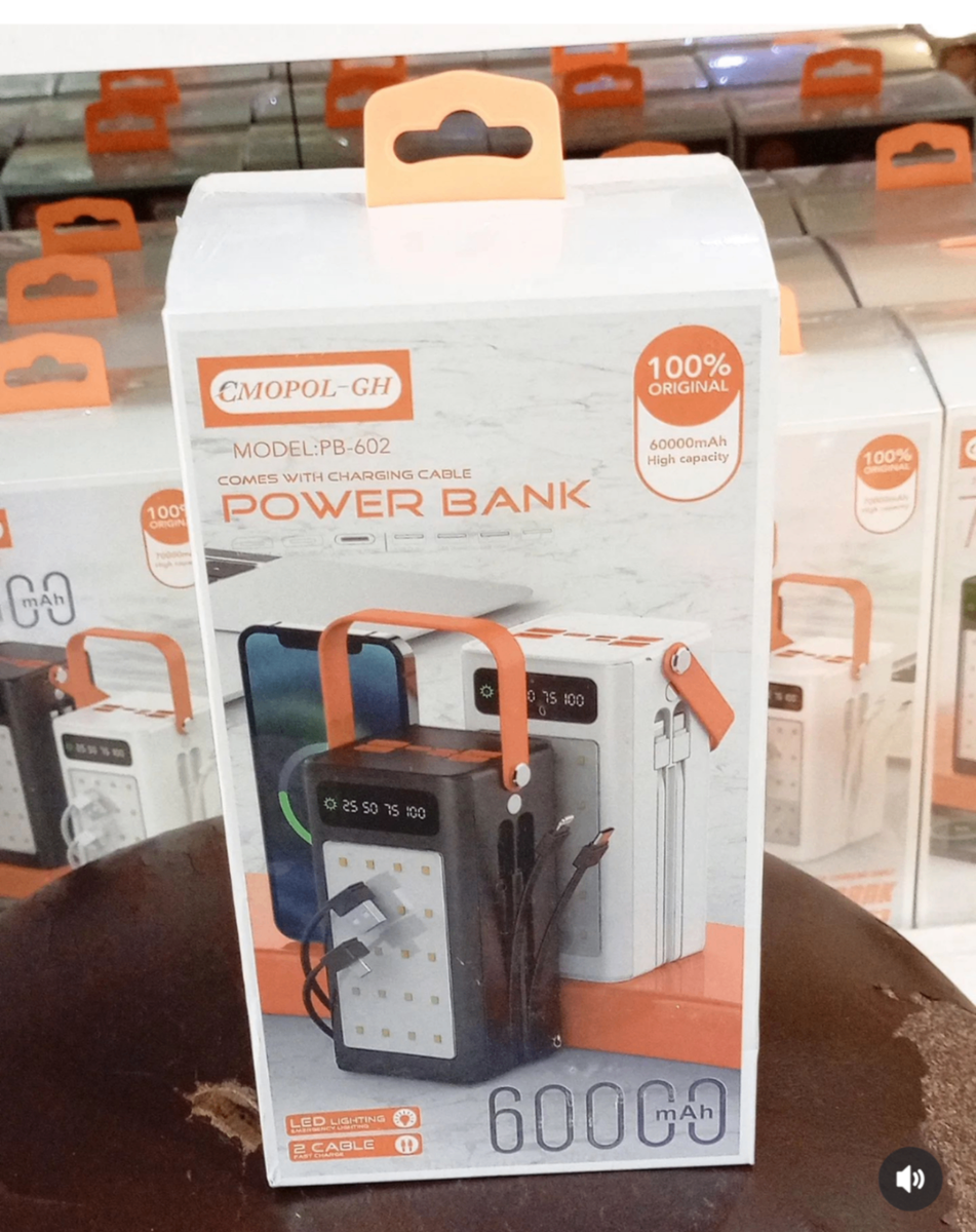 Key Features: * Model : PB-602 * 100% Original * Capacity: 60000mAh * LED Display * LED Light * Battery last 3weeks after charge * Over charge Protection * Over voltage Protection Delivery Available Nationwide