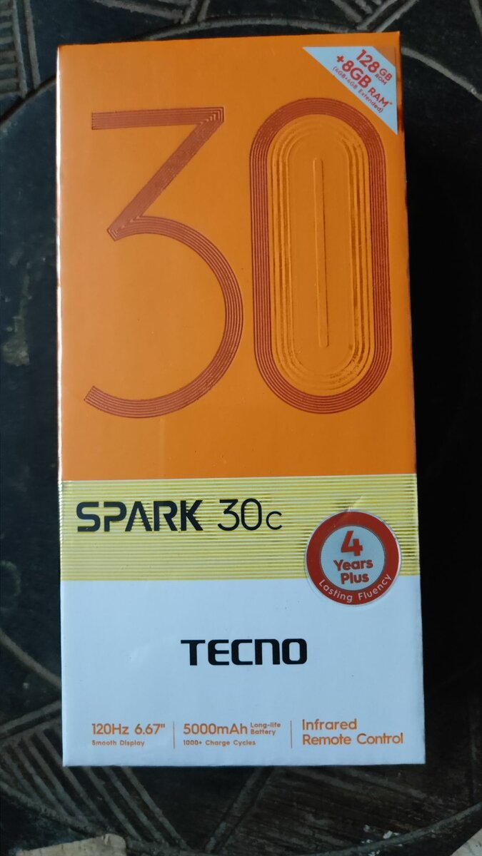 Original Tecno Spark 30c 128gb internal memory 4gb ram Main camera = 50mp Battery capacity = 5000mah Brand new in box