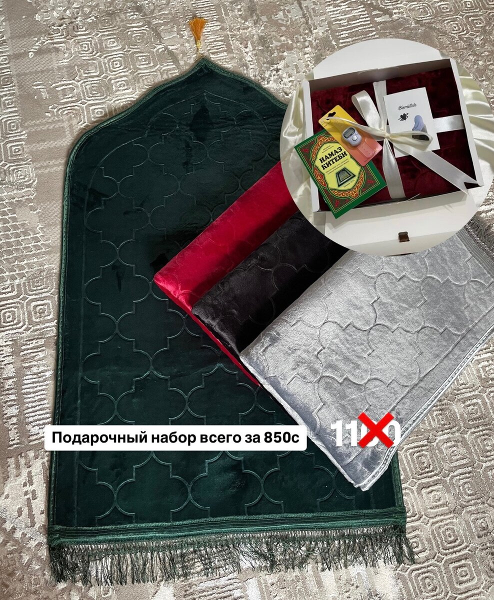 Жайнамазы высокого качества, подарочные наборы для начинающих намаза. Набор стоит со скидкой 850с, жайнамаз отдельно 600