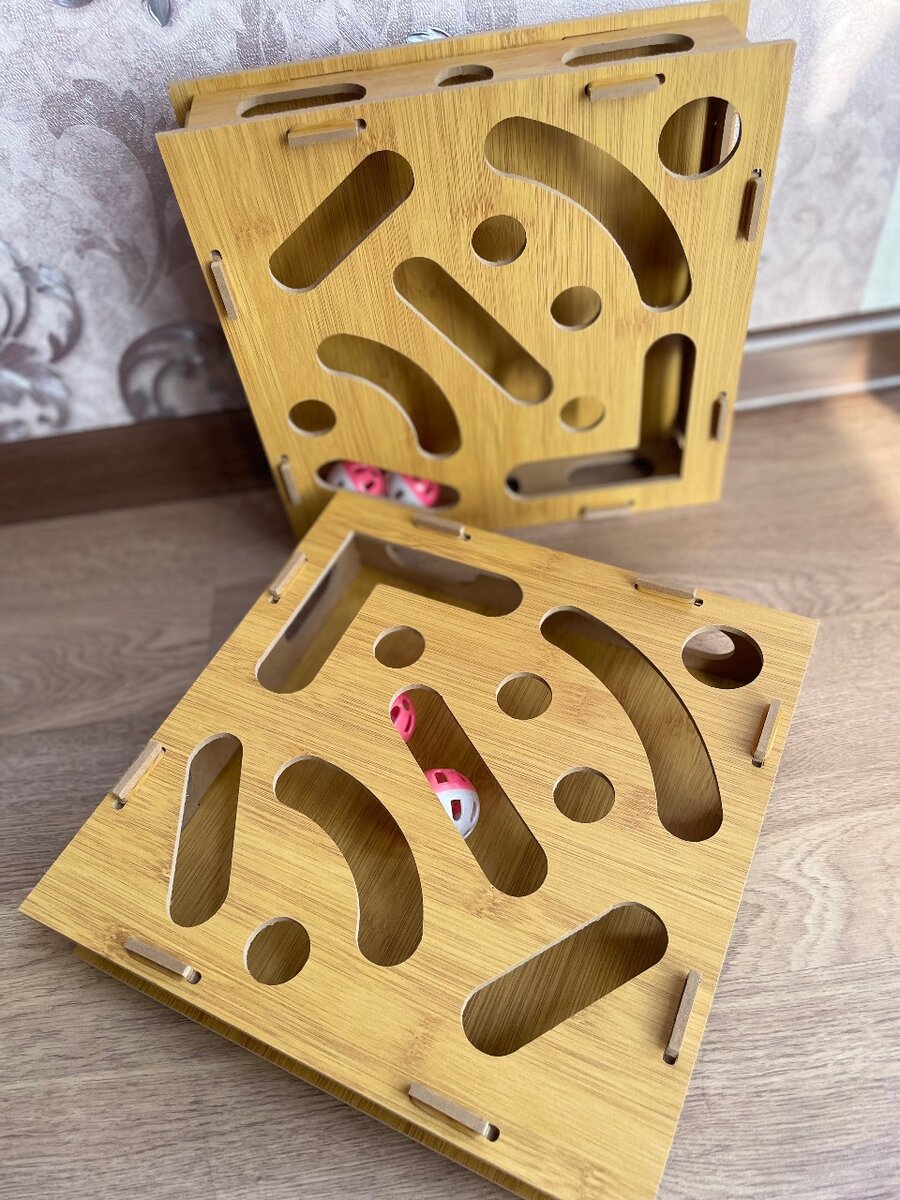 Стильный деревянный лабиринт с шариками увлекательная игра для кошек и тренировка их инстинктов!