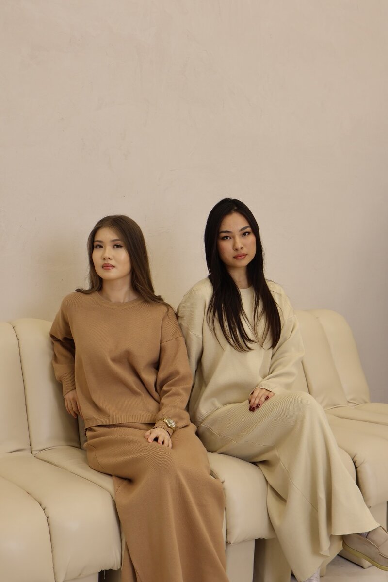 Свитер и юбка длиной 100 см (без разреза) из мягкого вязаного трикотажа.