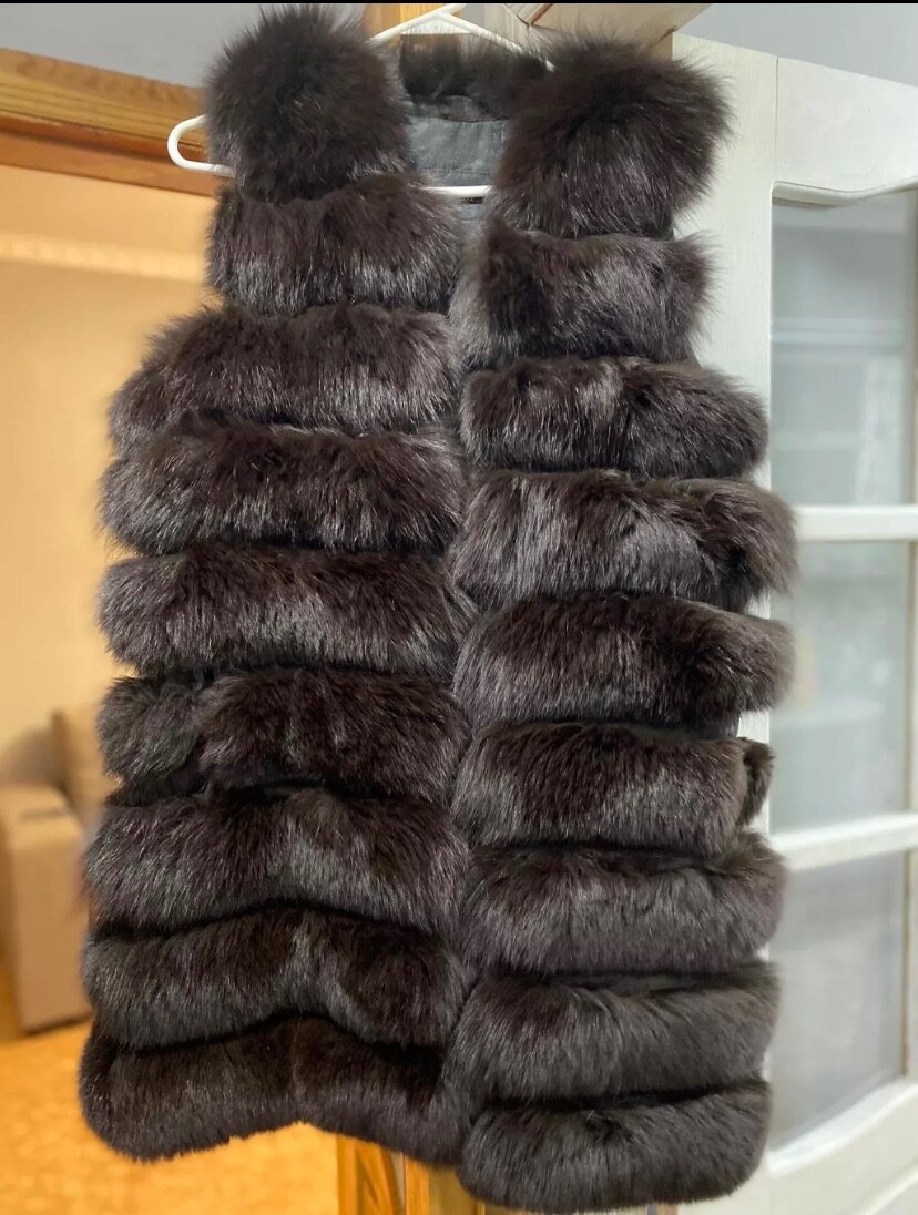 Продаю меховую жилетку В хорошем состоянии. Длина метр Цвет темный шоколад Писец Есть карманы Размер XXL Цена 15 000 с