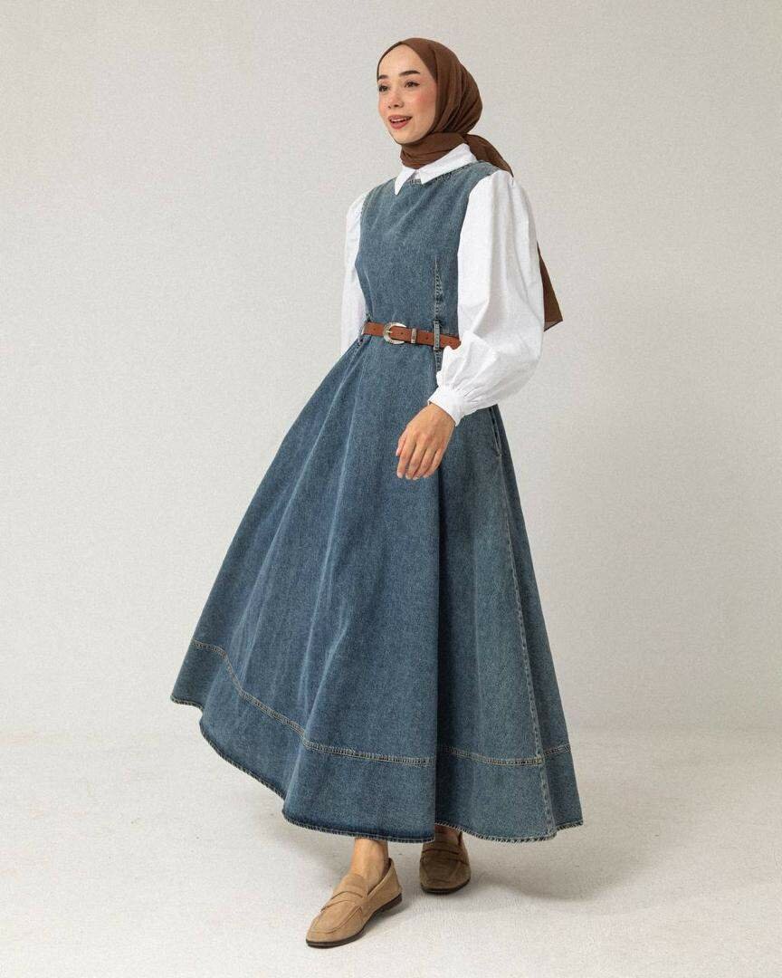 Джинсовый сарафан с замком на спине + ремень Ткань не тонкая Размеры: 38-46