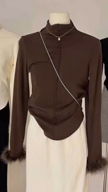 ЛОНГСЛИВ ПЕРЬЯ коричневого цвета
