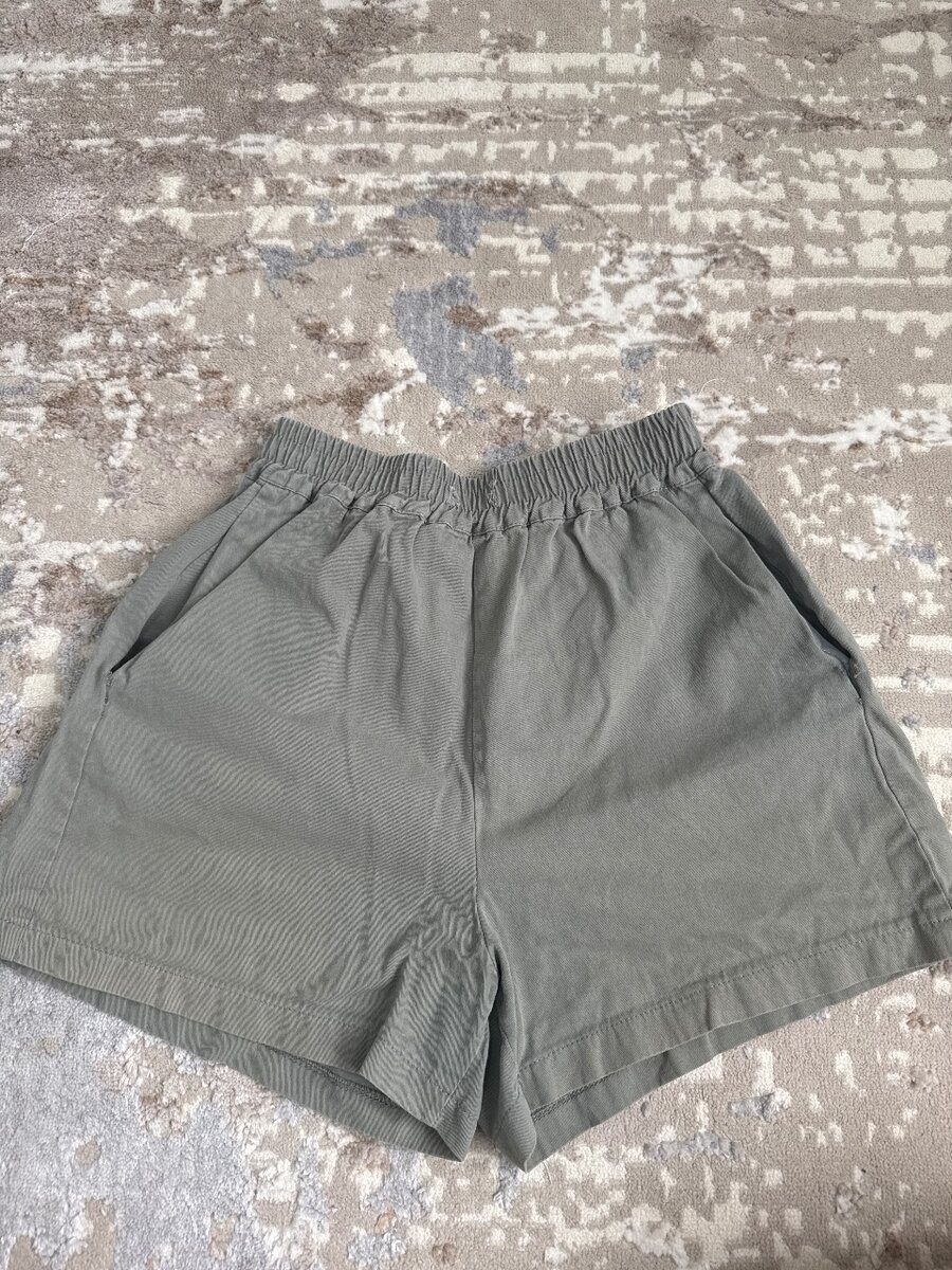 Зелёные джинсовые шорты с резинкой на поясе очень удобные и практичные. Имеются карманы, ткань плотная и качественная. Никаких повреждений, носились аккуратно. Немного посветлел цвет, но это почти не видно и даже придаёт винтажный стиль. Отлично подойдут для лета, прогулок или отдыха.