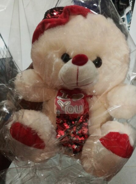 Un ours en peluche rouge doux et câlin tenant un cœur avec 'love you' inscrit dessus. Idéal pour la Saint-Valentin ou pour exprimer votre amour. Conçu en matériau doux et confortable.