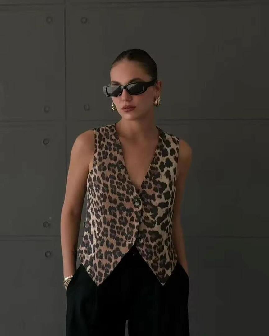 Леопардовые и однотонные жилетки Тренд этого сезона Ткань Милано Посадка Размер 42-44 Цена 1500