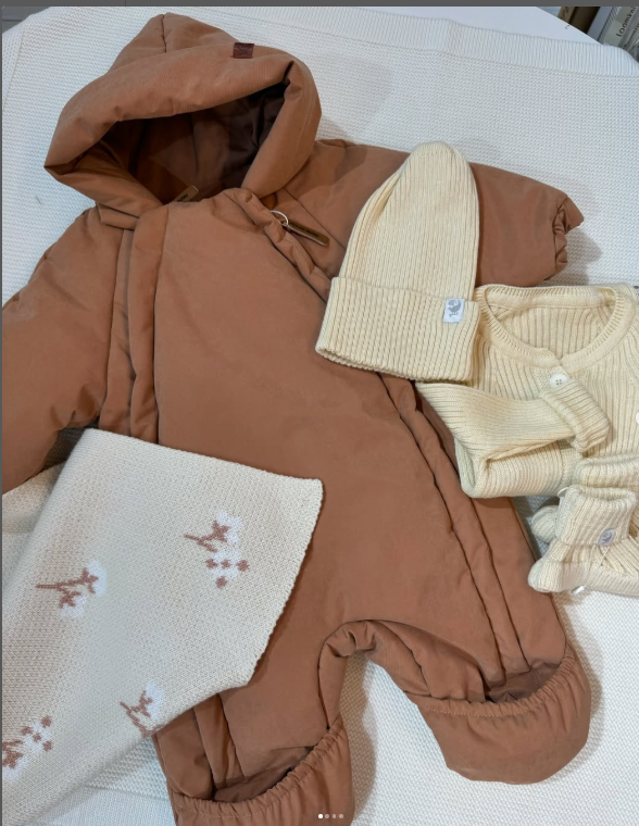 лаконичный комбинезон, мягкая шапочка и удобные пинетки.