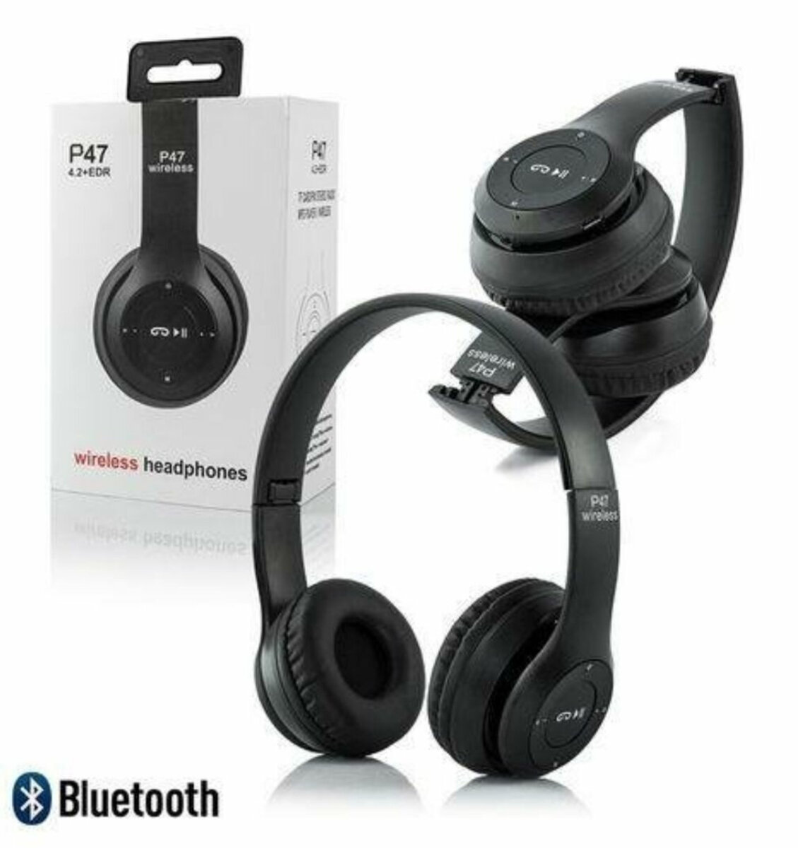 Experience high-quality sound with P47 Wireless Bluetooth Headphones. Featuring comfortable ear cushions, built-in microphone, and easy on-ear controls, these headphones are perfect for music lovers on the go. Enjoy up to 12 hours of playtime and seamless connectivity with Bluetooth enabled devices. Ideal for travel, workouts, and daily use.