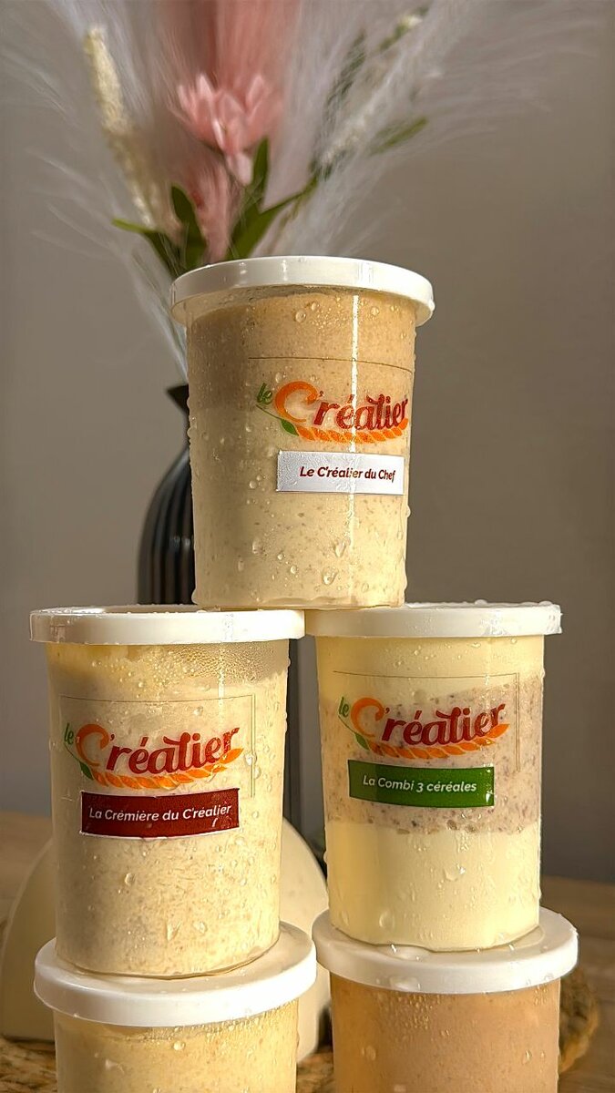 Découvrez notre sélection de glaces artisanales aux saveurs uniques. Le Pack découverte vous permet davoir 10 produits de 200 ML. 3 x 03 Saveurs + 01 Combi 3 céréales en plus. La Crémière du Crealier : De la crème au Blé complet saveur céréalac. La Combi 3 céréales : Yaourt crémeux et un mixte de 3 céréales(Blé, Maïs ). Le Crealier du Chef : Blé, une couche à la saveur biscuité avec de la crème et une autre à la saveur Caramel beurre salé.