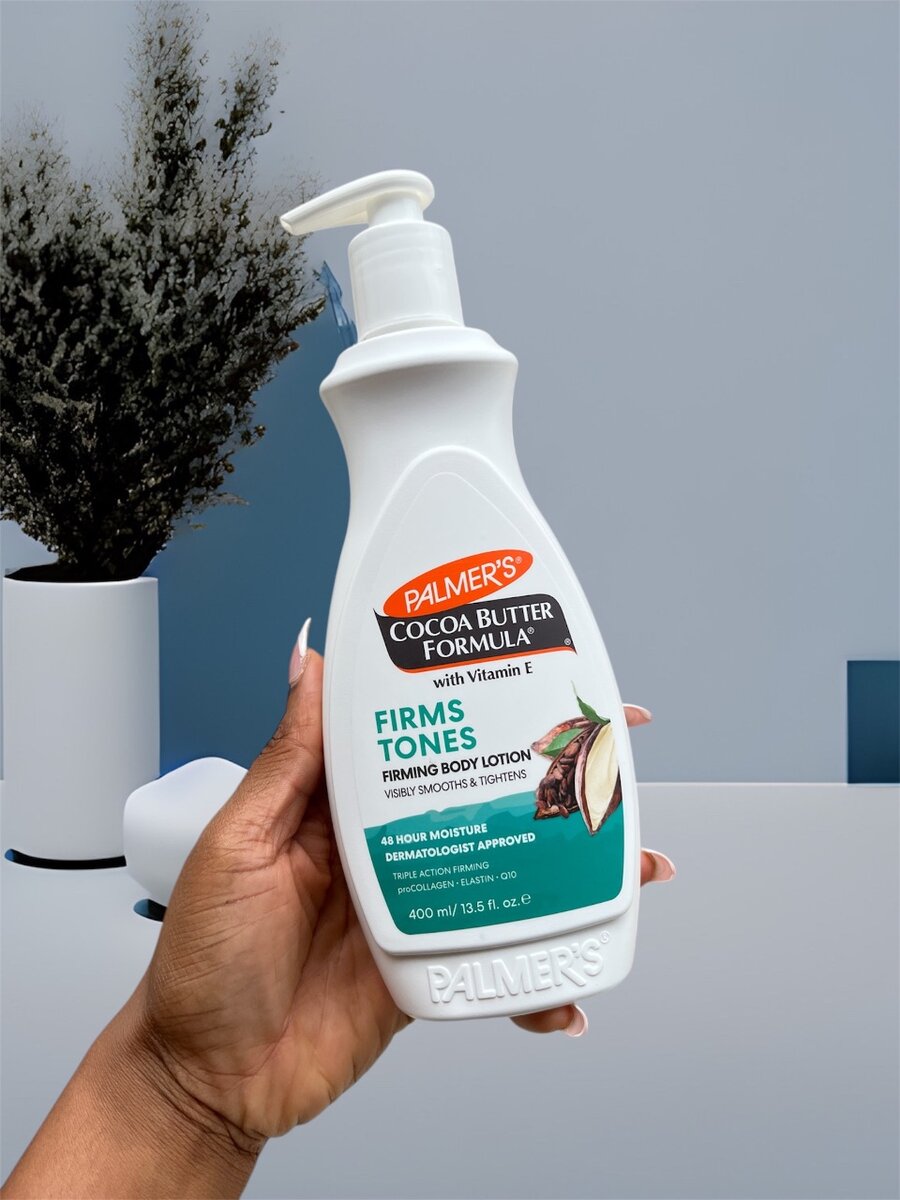 This lotion visibly firms and tones skin,crafted with cocoa butter vitamin E plus collagen. Elastin and Q10 to address loss of tightness or dimpled appearance.It improves skin smoothness,firmness and texture.Dermatologists tested.48 hour moisture.
