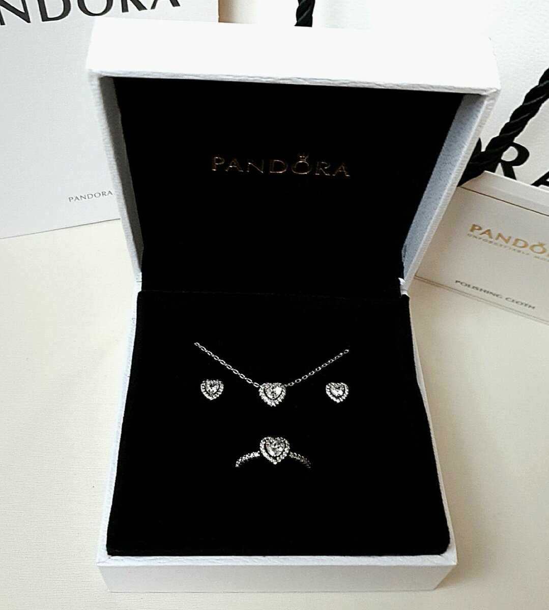 Акция! Подарочный набор Pandora - изысканный и нежный комплект, состоящий из серёг, кольца и цепочки с кулоном в виде сердца. Серебро 925 проба. Комплект идёт уже с оформлением.