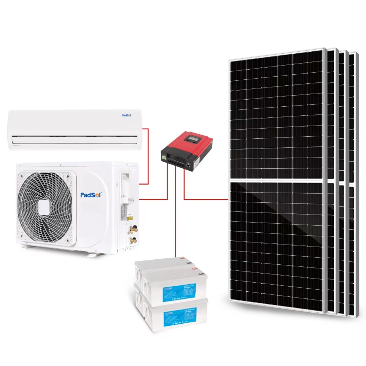 Système d'énergie solaire pour climatiseur. Compatible avec les climatiseurs, utilise l'énergie solaire pour un fonctionnement efficace. Écologique et économique.