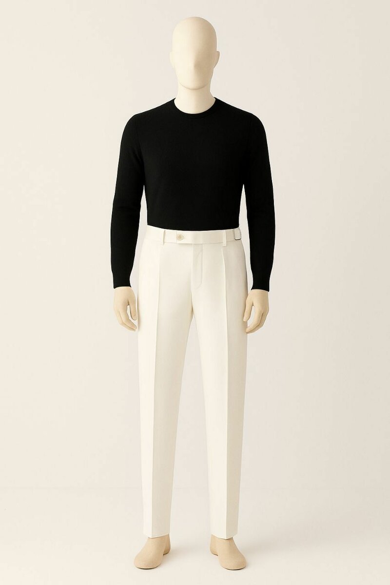 Découvrez ce pantalon blanc élégant pour homme, parfait pour un style formel ou moderne au quotidien. Fabriqué avec des matériaux de qualité, il offre confort et sophistication. Idéal pour des occasions spéciales ou pour un look professionnel raffiné.