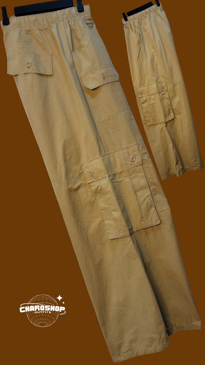 Découvrez ce pantalon cargo ample beige, parfait pour un look décontracté. Confort assuré grâce à sa taille élastique et ses poches pratiques. Idéal pour des sorties en plein air ou une journée relax à la maison.